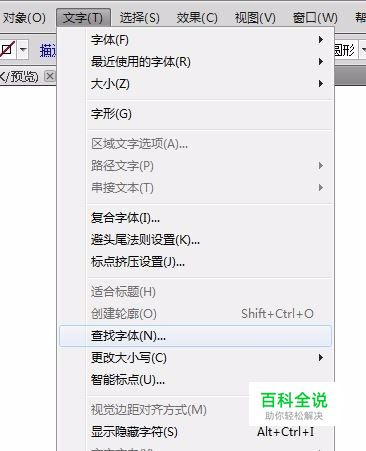 在菜单栏中选择文字-查找字体