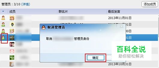 打开您要取消管理员的群=》点击“群设置”=》群成员=》选择您要取消管理员的群成员=》点击管理员图标(绿色小头像)=》确定取消该成员的管理权限即可。
