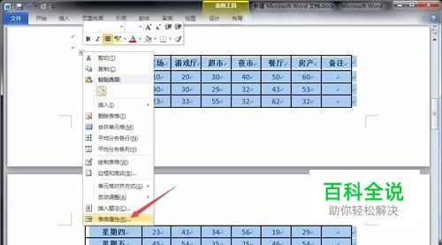 首先,我们将整个表格选中,单击鼠标右键,选择“表格属性”选项,如图所示。