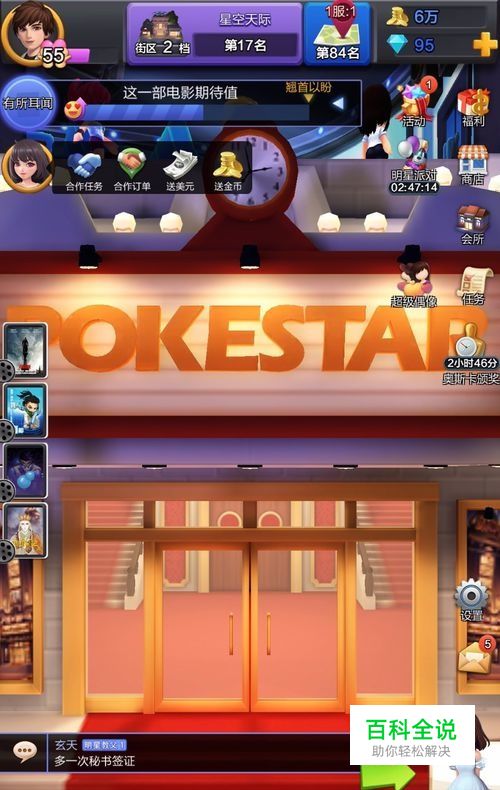 在集团正上方就是任务指示和进度了,然后根据要求去拍电影便可,比如这次是收集冒险片点赞数,那就尽量找冒险片来拍就可以了。