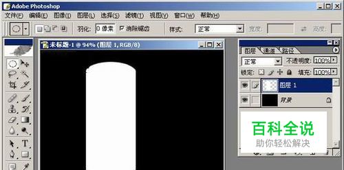 用矩形和椭圆选框相加,获得图层一的外形,新建图层,填充白色