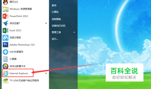 打开IE浏览器:从开始菜单里开启或者桌面快捷方式。