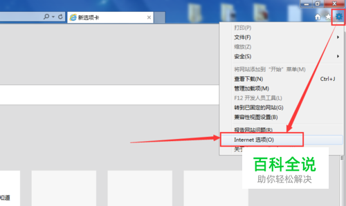 点击 设置(齿轮图标),然后点击“ Internet 选项”。