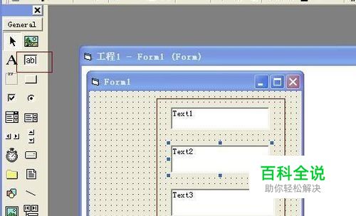 在当前窗体上加载三个文本框(text1,text2,text3),用来设置三角形的三条边 如图
