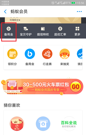 第二步我们可以看一下支付宝官方的解释,进去蚂蚁会员之后,点击备用金,进去之后,点击玩转备用金,如下图所示: