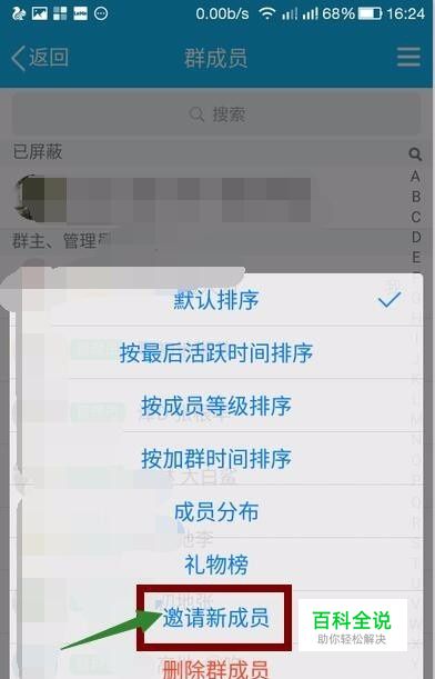 在屏幕下面的拉出菜单里,选择“邀请新成员”选项,点击。