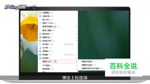 在输入法工具条中右键弹出上拉选项。点击软键盘。