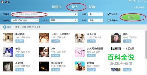 第二步:首先介绍怎么找人,点击“查找”功能后,会跳出一个窗口