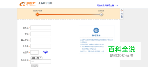 阿里巴巴会员有两种,一种是企业账号,另一种是个人账号;先说企业账号,进入企业账户注册页面后,验证账号信息,点击“同意条款并注册”,即可注册成功;