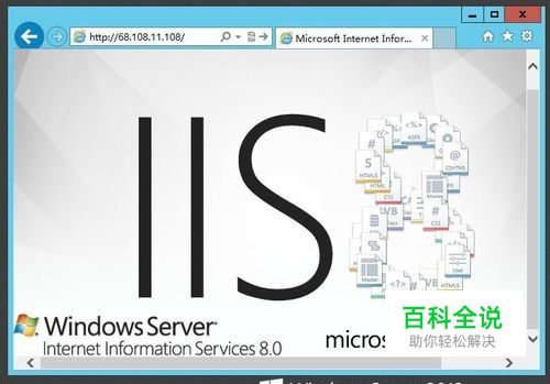 12-查看windows 2012 Server IIS8.0安装和运行结果:打开Internet Explprer10浏览器,输入本机公网ip,或者本机内网ip,或localhost都可以,看到IIS8.0界面显示出来了!