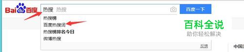 搜下通过百度搜索“热搜词”,会有下拉框,可以看到关联性最多的搜索词.