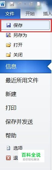 【文件】选项卡包括【保存】、【另存为】、【打开】、【关闭】、【信息】、【最近所用文件】、【新建】、【打印】、【保存发送】、【帮助】、【选项】、【退出】十二种命令。当点击【文件时】首先看到的是【信息】选项卡,因为他是蓝色,并且处于打一状态。