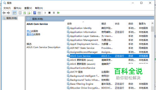 首先,进入服务管理器,找到ASUS开头的服务,都关了(我这边当时只有一个ASUS Com Service)
