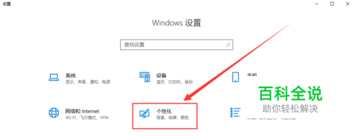 打开电脑,进入Windows设置界面,点击界面中的“个性化”图标,进入个性化界面。