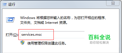 按键盘上的Win+R键,即可打开运行对话框。输入services.msc后回车。