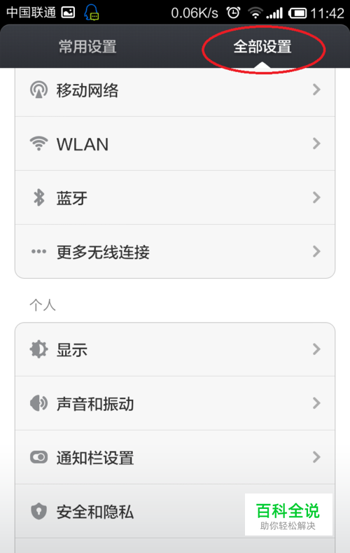 进入”系统设置“,可以看到顶端有“全部设置”。
