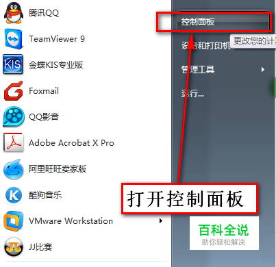 打开windows7的开始菜单选择开始菜单里面的控制面板选项。