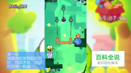 用弹簧将吃货弹起的同时,吹动木板,吃货吃到第一颗星