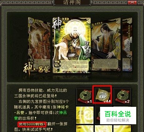 点击请神阁,这里不仅有神将卡,还有经验奖励,虽然需要花费一定数量的铜钱,但是还是可以获得经验的,也是一个办法。