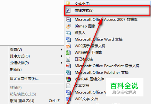 首先,在资源管理器或桌面鼠标右键,选择【新建】-【快捷方式】。