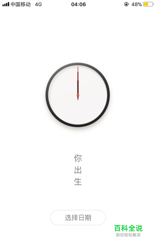 首先,我们需要打开“生辰”这个手机软件,打开它的主界面,我们会看到“你出生”,还有选择日期,我们点击“选择日期”
