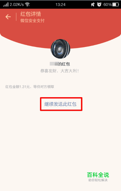 点击红包--看看大家的手气--点击继续发送此红包--选择你要真正发送的联系人或者群