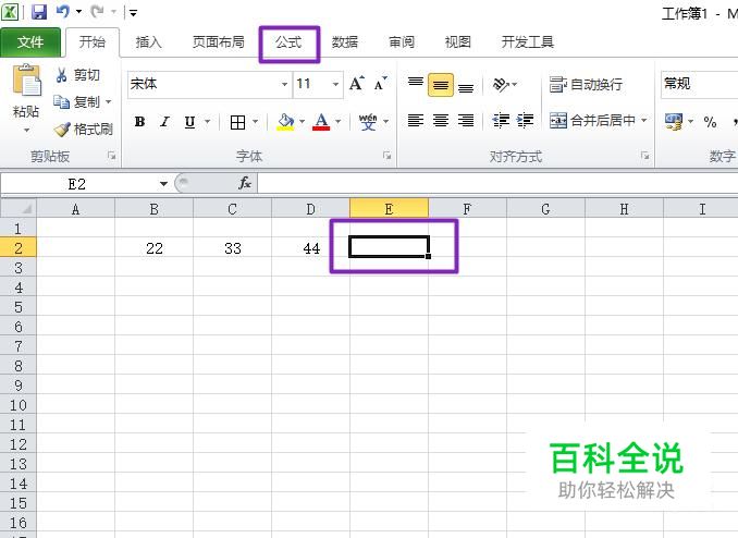 然后我们选中44后面的那个单元格,然后点击公式;