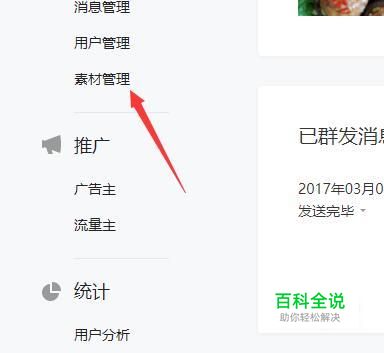 点击左侧的素材管理,然后再素材页面的右侧直接点击新建素材,这样就可以对素材进行编辑了。