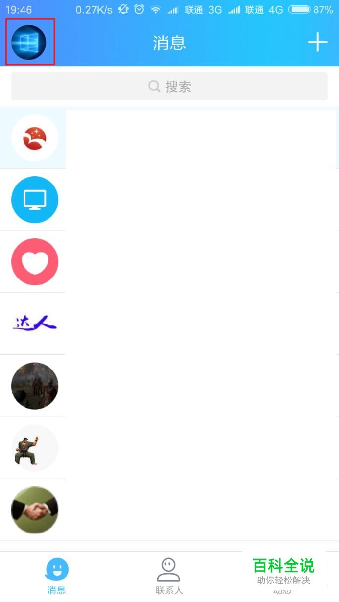 首先,打开手机QQ主页面,在消息页面中点击个人头像。