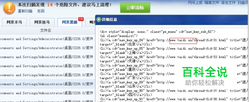 当我们通过网站安全狗的网马查杀功能发现黑链内容时,如下图: