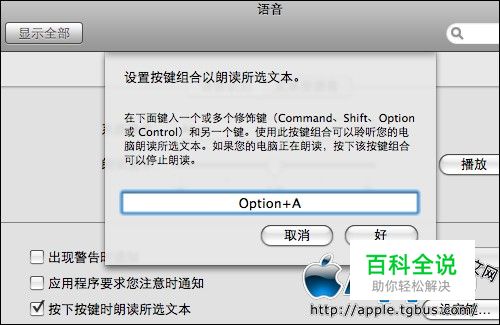 在mac 系统偏好设置的语音设置内置了朗读英文文本的功能。只要打开“语音”设置,切换到“文本至语音”标签,钩选“按下按键时朗读所选文本,并设置一个快捷键。