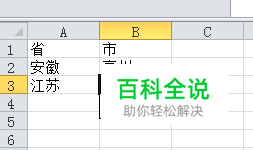 1.以省市为例,第一步将省市名称列好,建议单独成一个sheet。