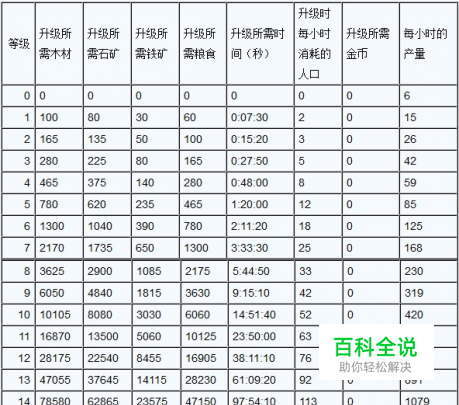 铁矿矿升级所需的资源、时间、人口、金币以及产量