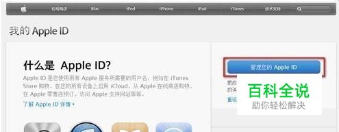 打开Apple ID管理页面点击管理您的Apple ID。