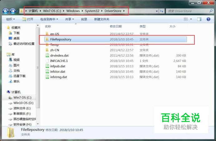 一般情况下都是因为使用的操作系统非原装系统,很多系统文件已经丢失了,所以要将这些文件找回。寻找另一台可以正常使用同版本操作系统的电脑,打开C:\WINDOWS\System32\DriverStore\FileRepository文件目录。