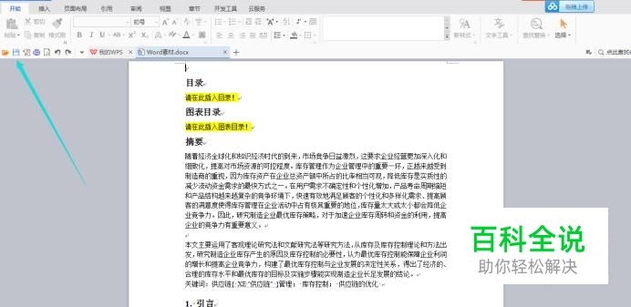将电脑上的word文档保存,在工具栏找到保存的按键,如下图所示
