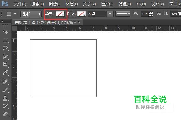 现在这个矩形中间部分是透明的,如果我们要把它变成黑色,就选择填充工具