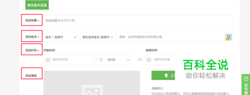 按照要求填写活动基本信息,如活动标题,活动地点,活动时间等。