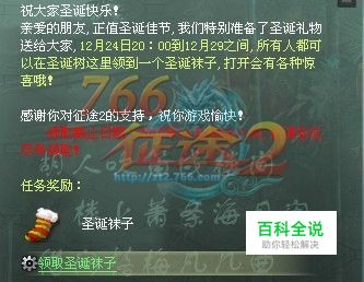 今年的圣诞比较冷哦,虽然已经过去了,但是游戏里依旧火爆。征途2圣诞活动的持续时间到29号。如果因为这些天太忙而没有来的及上线领取奖励的童鞋们要抓紧啦~下面咱们就一起去看看具体的任务内容吧。