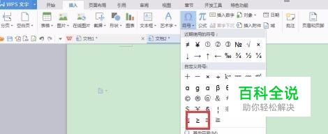 第一步:单击“插入”选项卡,在“符号”组中点击“符号”按钮,选择“其他符号”,接着弹出“符号”对话框,将“字体”设置成“宋体”,“子集”选择“数学运算符”,然后找到大于等于号插入即可。