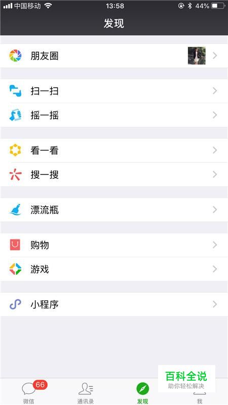 首先点击微信中的朋友圈,如下图所示。