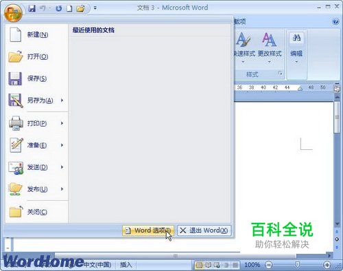 第1步,打开Word2007文档窗口,依次单击Office按钮→“Word选项”按钮,如图2009021410所示。图2009021410 单击“Word选项”按钮