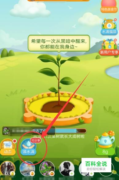 按着任务进行操作即可获得水滴,例如点击“分享水滴”,将水滴分享给好友,自己就可以得到一些水滴,如图所示。