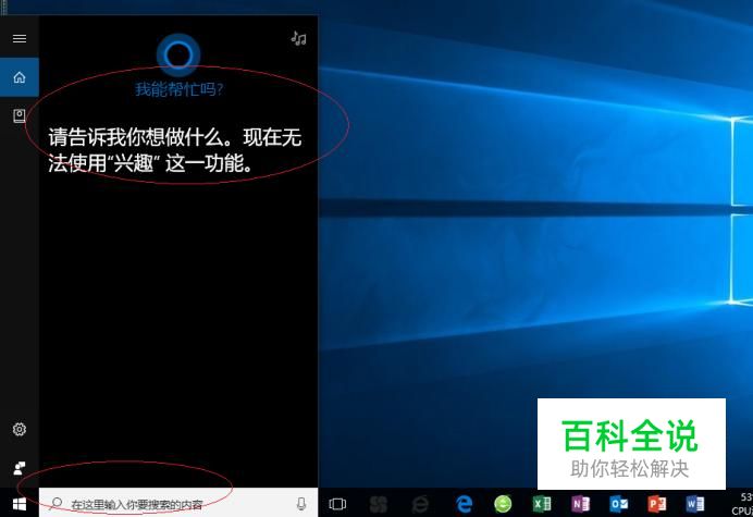 启动Windows 10操作系统,如图所示。点击任务栏搜索框,开始使用Cortana(小娜)智能语音助理。