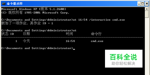 点击 开始-所有程序-附件-命令提示符 输入 at 16.54 /interactive cmd.exe