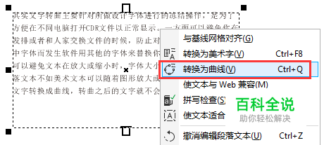 其实文字转曲主要针对所做设计字体进行的冻结操作,是为了方便在不同电脑打开CDR文件以正常显示。一方面可以避免你在发排或者和人家交换文件的时候,防止对方的电脑没有你电脑中字体而发生软件用其他的字体来替换你的字体。另一方面还可以避免文本在放大或缩小时,字体大小出现错乱的情况(段落文本不如美术文本可以随着图形放大或缩小)。故此需要将文字转换成曲线,转曲之后的文字就不会有字体问题了。