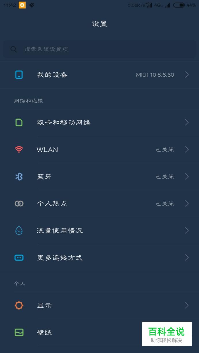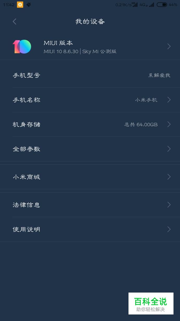 如果手上的小米八是开发版的话,直接进入手机的设置,然后点击"我的设备"。