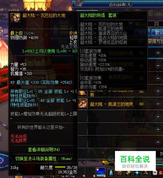 其次便是“黄金战甲的荣耀”,即“万世荣光”套装,超大陆套装的前置套装,在属性强化和力量的加成上非常高,不过在速度和暴击率上略有欠缺。