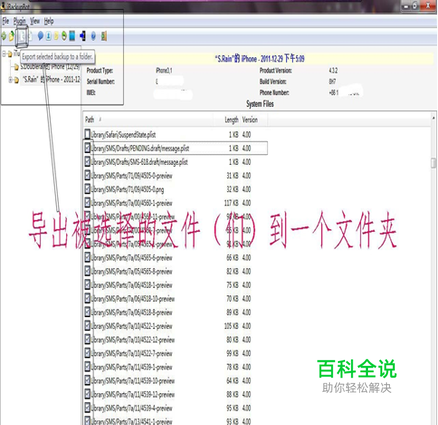 导出被选择的文件到一个文件夹(我建了一个SMS的文件夹),图中第三个按钮