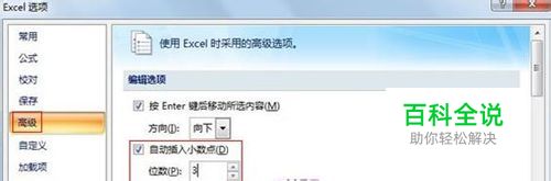 ②切换到高级标签,勾选自动插入小数点,位数可以自由设定,例如我设置的是3。